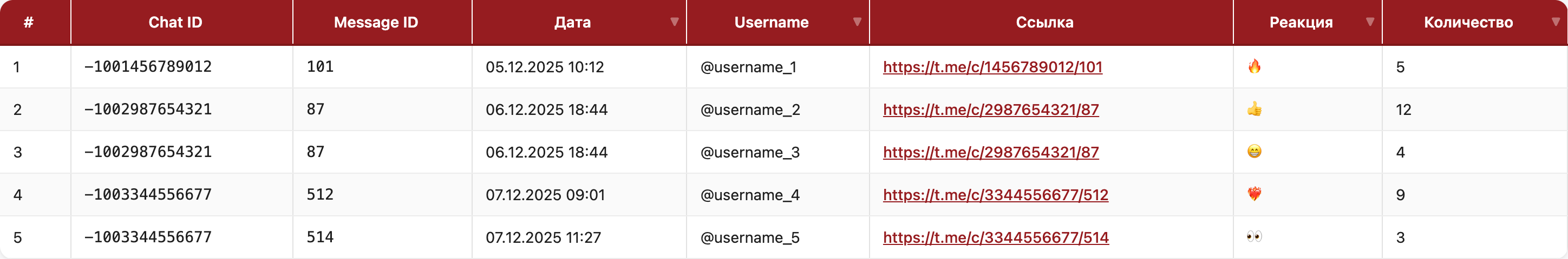 - Все реакции на сообщения фиксируются в режиме реального времени.
